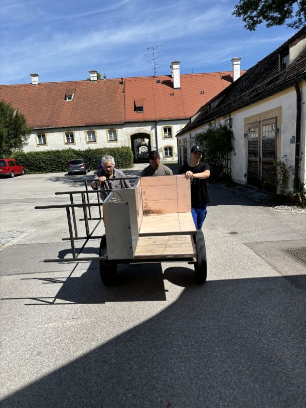 Als erstes brachten mein Mann und ich allein den Werktisch in den Raum.