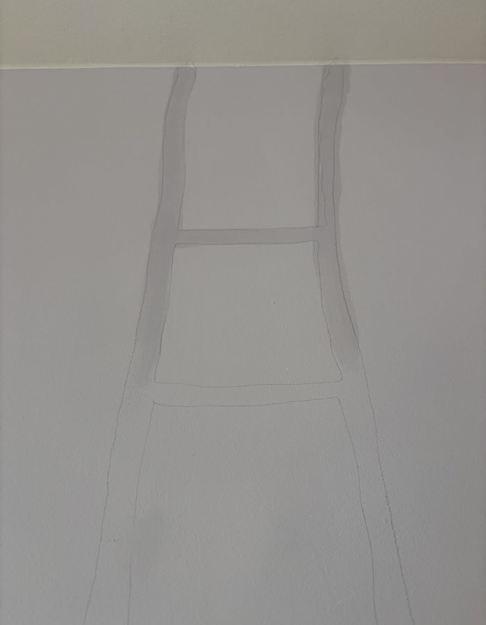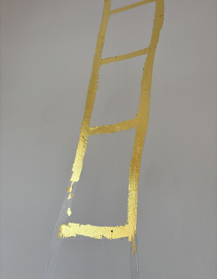 Am Tag vor Weihnachten 2024 hatte ich das plötzliche dringende Bedürfnis meine Himmelsleiter an die Wand zu vergolden. Ich wollte unbedingt, daß diese symbolstarke Arbeit vor dem Jahresende noch vollbracht wird.