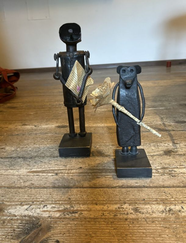 Diese zwei Eisenfiguren mit einem Begleitbrief meiner Tochter passen seit dem auf die Geschehnisse im Atelier auf!